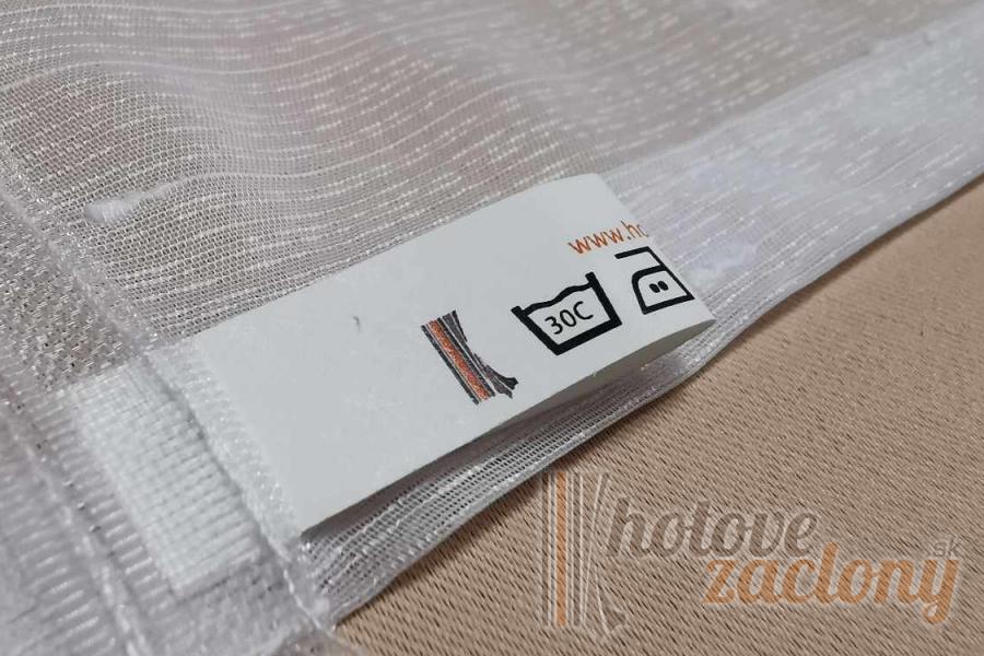 Záclony sú jemné tkaniny, ktoré si vyžadujú šetrné zaobchádzanie. Preto ich perieme vo vrecúškach aby sa nekrčili a šetrne vyprali. Doporučujeme prať v pracom prostriedku na záclony, a odstreďujeme na to určenom programe ( resp. na najmenších otáčkach ). Sušiř v sušičke sa nedoporučuje. Odporúčame vlhkú zavesiť, keď si vyžadujem žehlenie tak max. na 150°C obyčjane znázornené dve bodky na žehličke alebo napariť vo zvislej polohe.