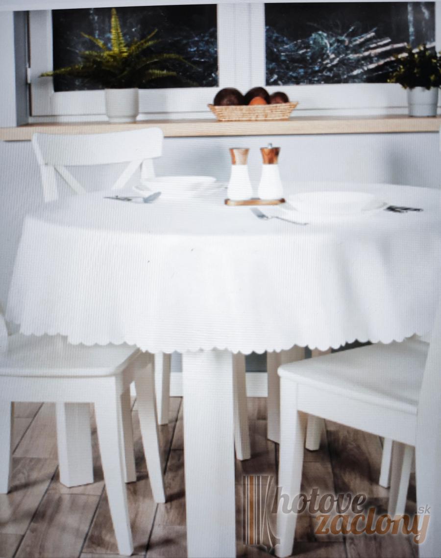Špine odolná biela nekrčivá látka pre stôl kruhového tvaru.
