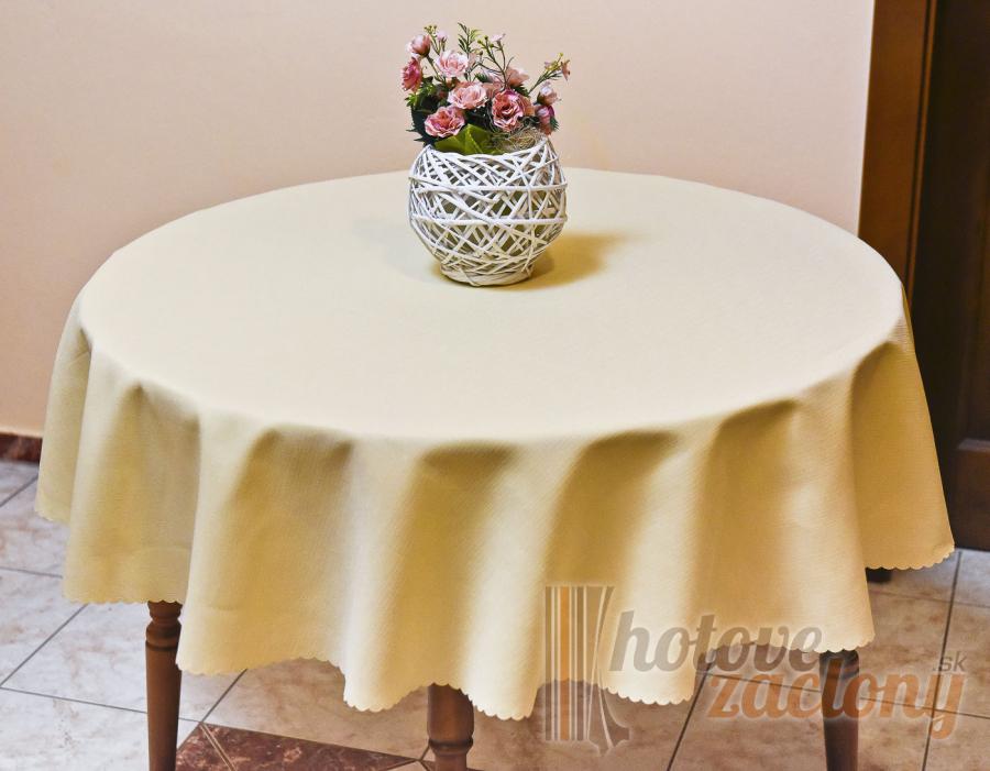 Špine odolná nekrčivá látka krémového odtieňu na stôl kruhového tvaru.